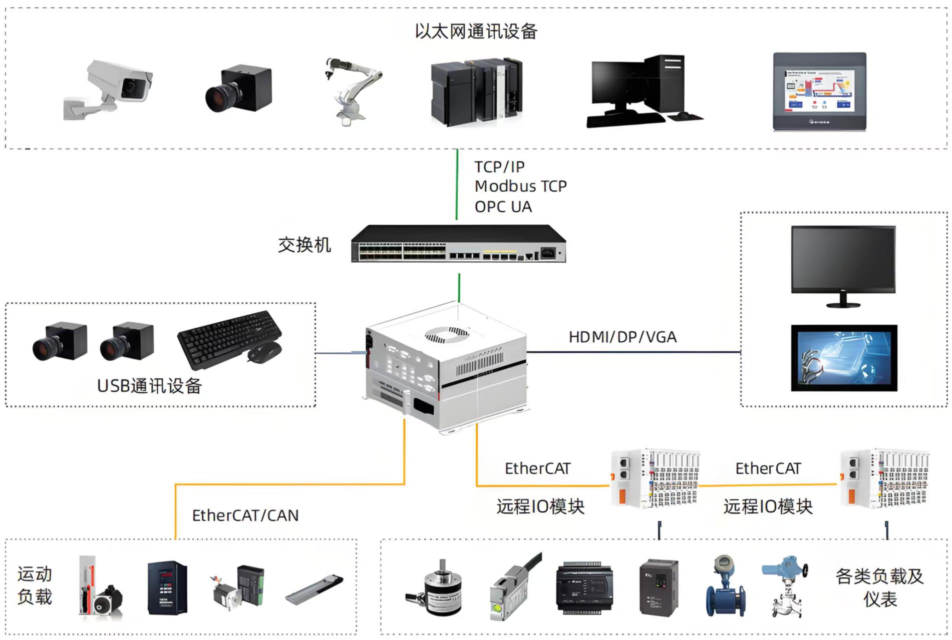集成運動控制、邏輯控制、機器視覺、組態(tài)顯示、邊緣計算等功能,實現(xiàn)高實時自動化控制的同時,兼顧運動控制與視覺融合、IT與OT融合;算控一體,簡化系統(tǒng)架構(gòu),極大降低系統(tǒng)成本。